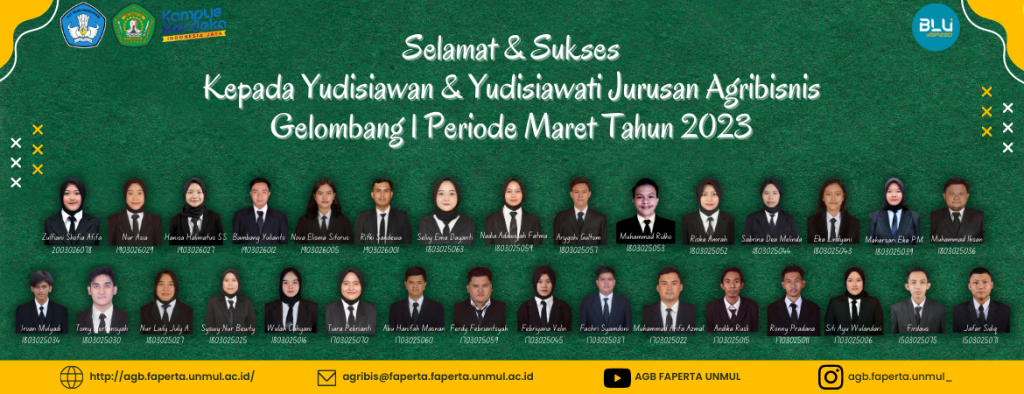 Masuk di awal tahun 2023 ini, Jurusan Agribisnis Fakultas Pertanian Universitas Mulawarman mengawali dengan mengikuti kegiatan rutin Fakultas Pertanian tahun ini dalam pelaksanaan Rapat Senat Terbuka dalam Rangka Yudisium Sarjana Gelombang Ke I Periode Maret Tahun 2023 tepat pada hari Read More …