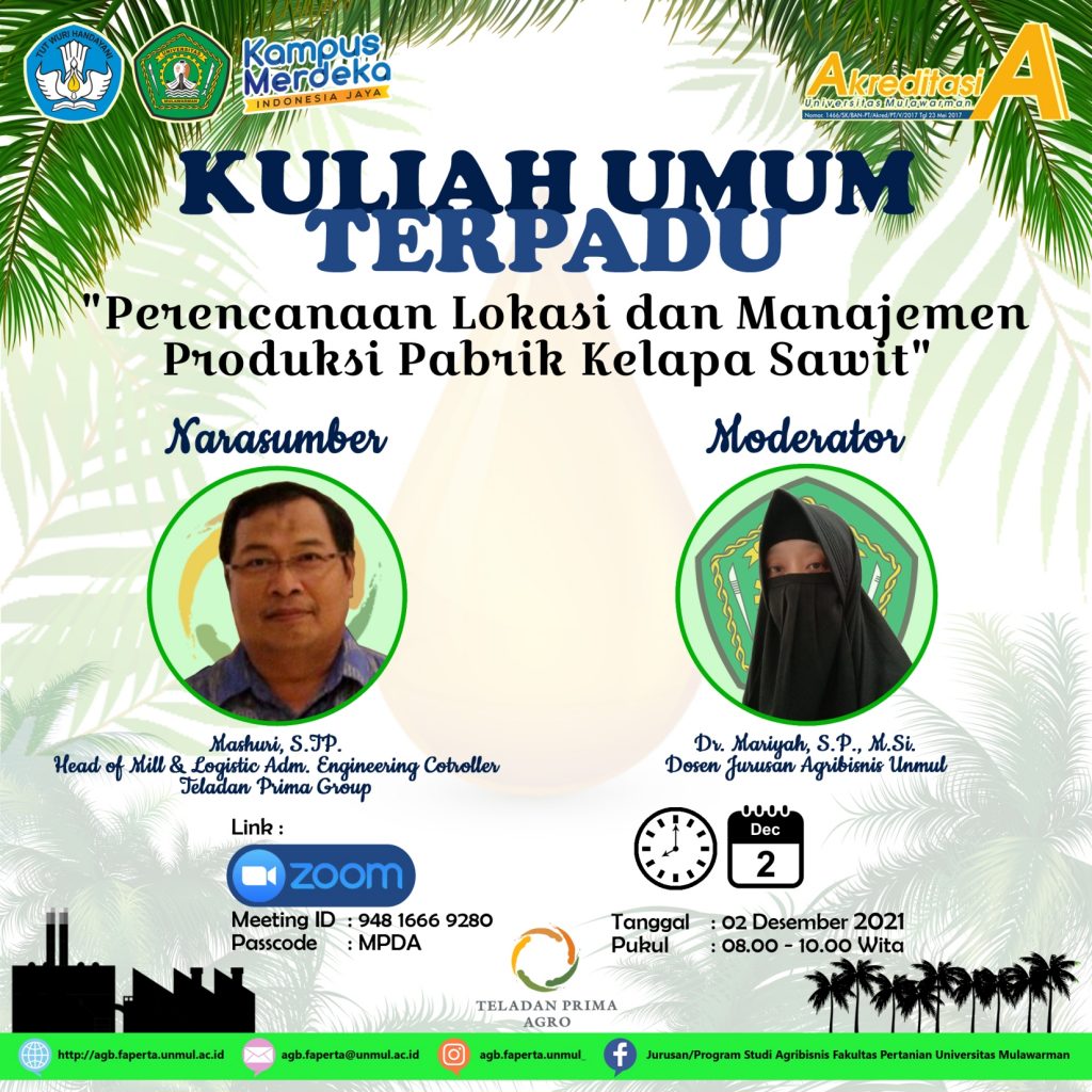 Jumat, 04 November 2022 telah dilaksanakan “Lokakarya Kurikulum Program Studi Sarjana (Implementas Kebijakan Merdeka Belajar-Kampus Merdeka(MBKM))” Fakultas Pertanian Program Studi Agribisnis Tahun 2022 melalui zoom meeting Fakultas Pertanian. Kegiatan ini menghasilkan evaluasi terhadap dokumen kurikulum Program Studi Sarjana Program Studi Read More …